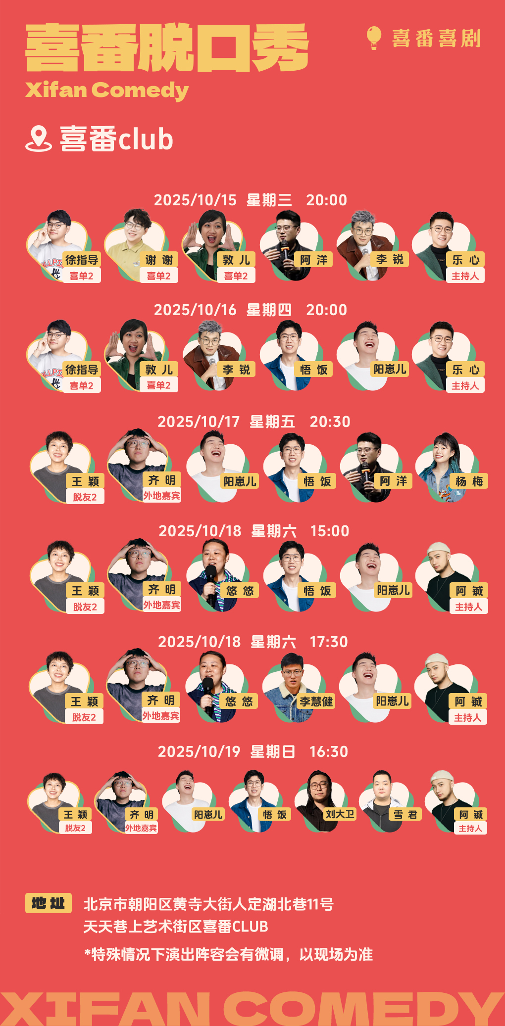 【喜番喜剧 本周演出信息】