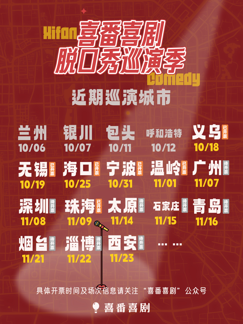 各大购票平台搜索“喜番喜剧脱口秀巡演季”即可购票