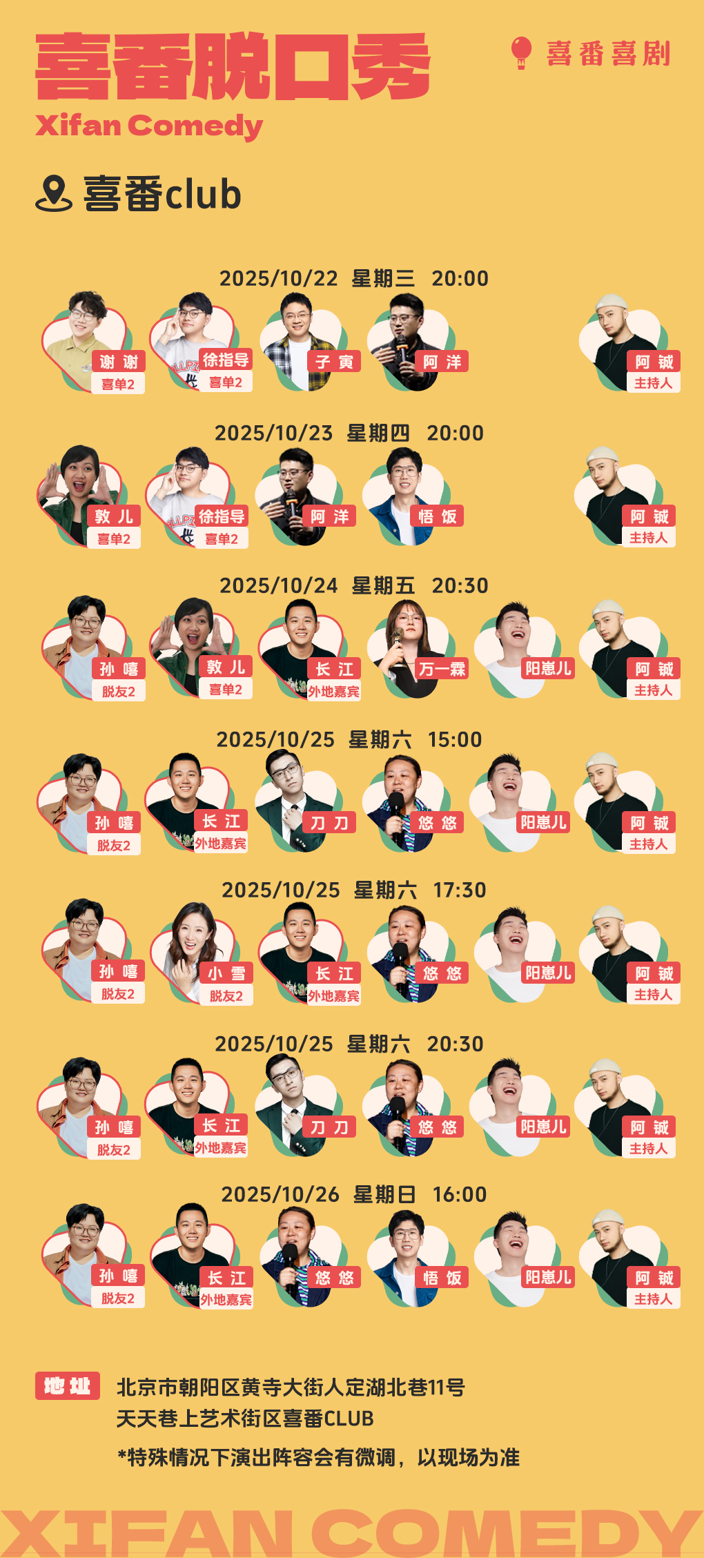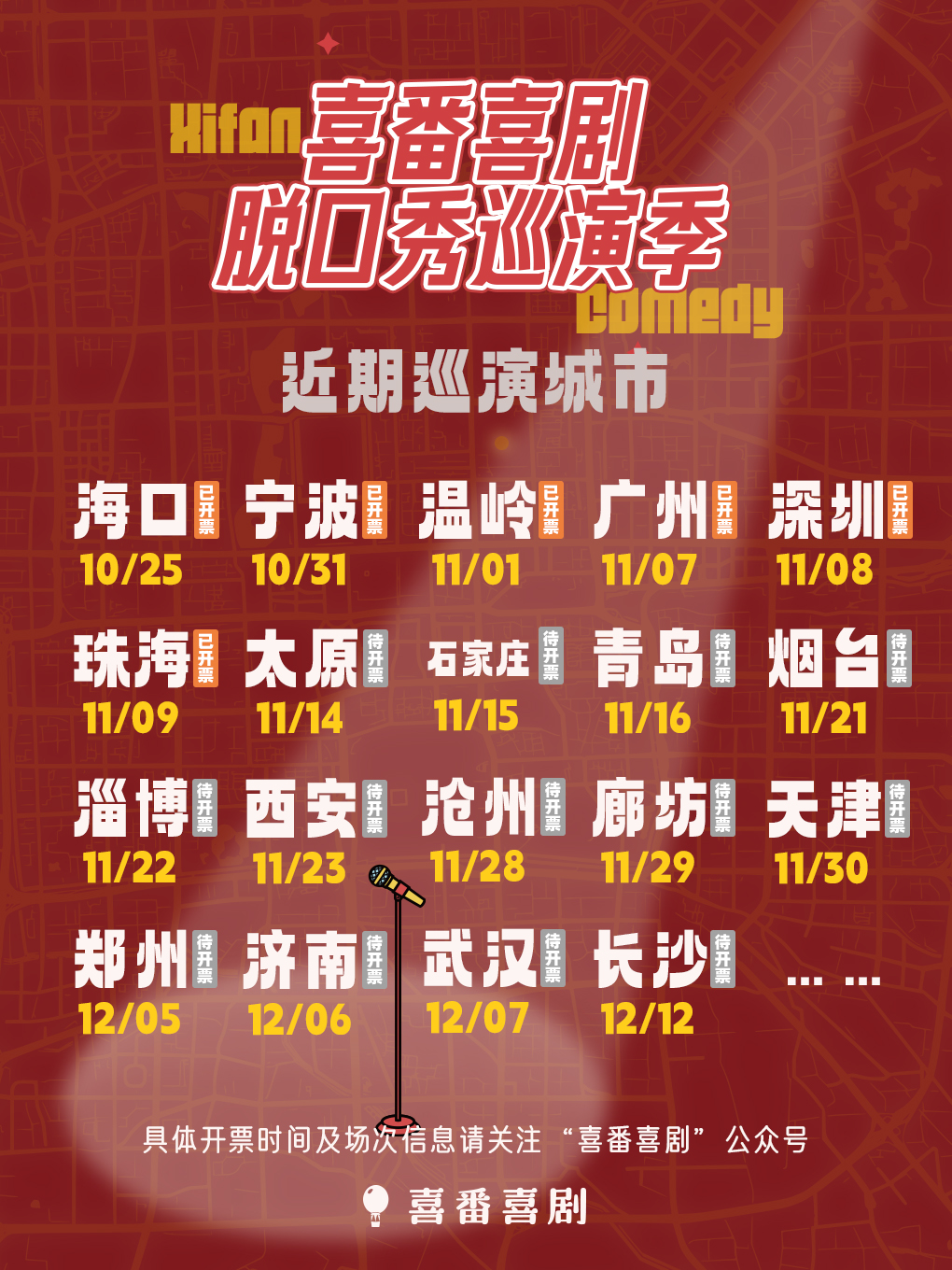 各大购票平台搜索“喜番喜剧脱口秀巡演季”即可购票