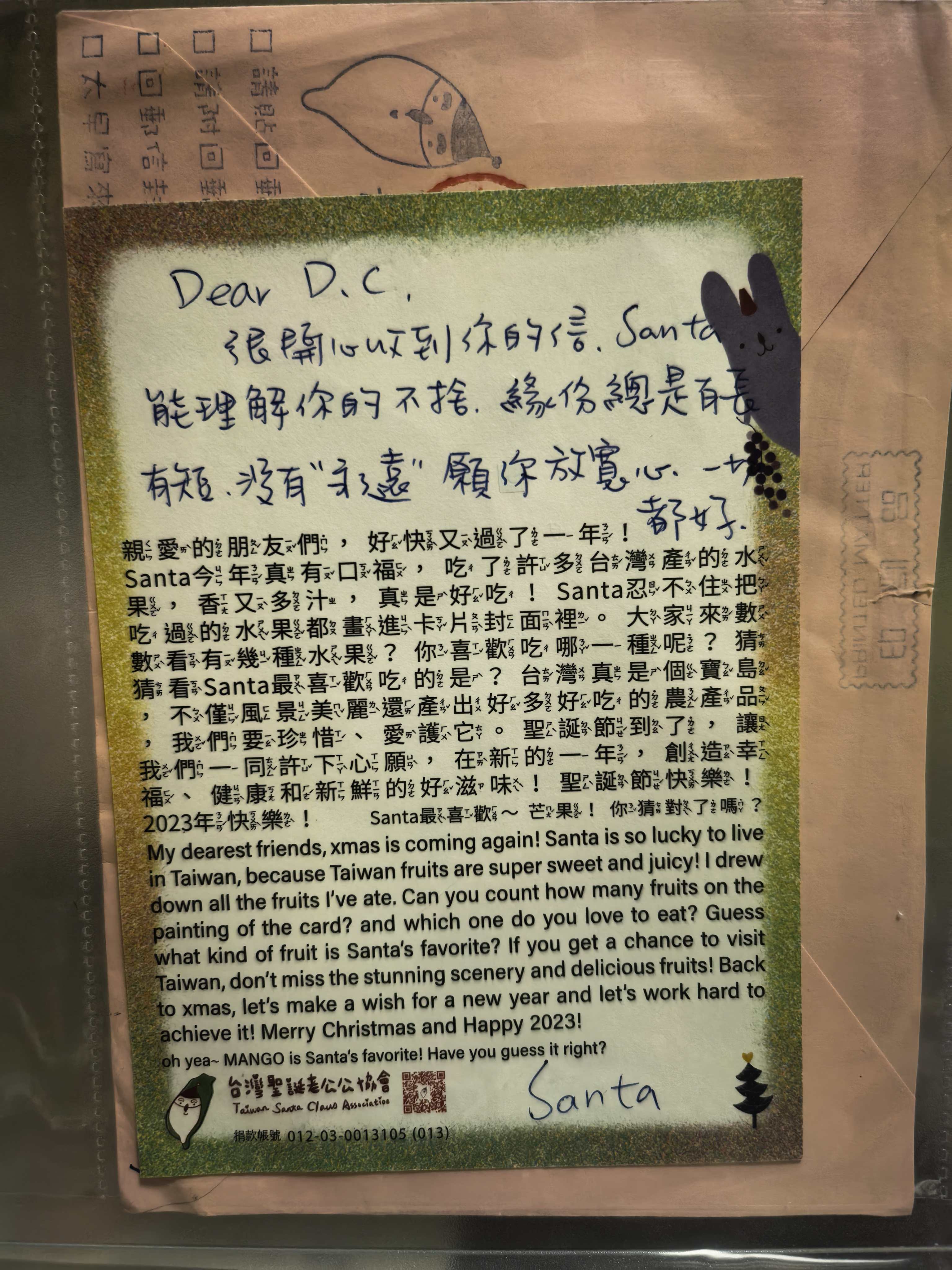 节目里还有一些意外动人的小故事:陌生人的回信、在陌生的国度遇见了同样爱写字的人、以及圣诞老人的回信。