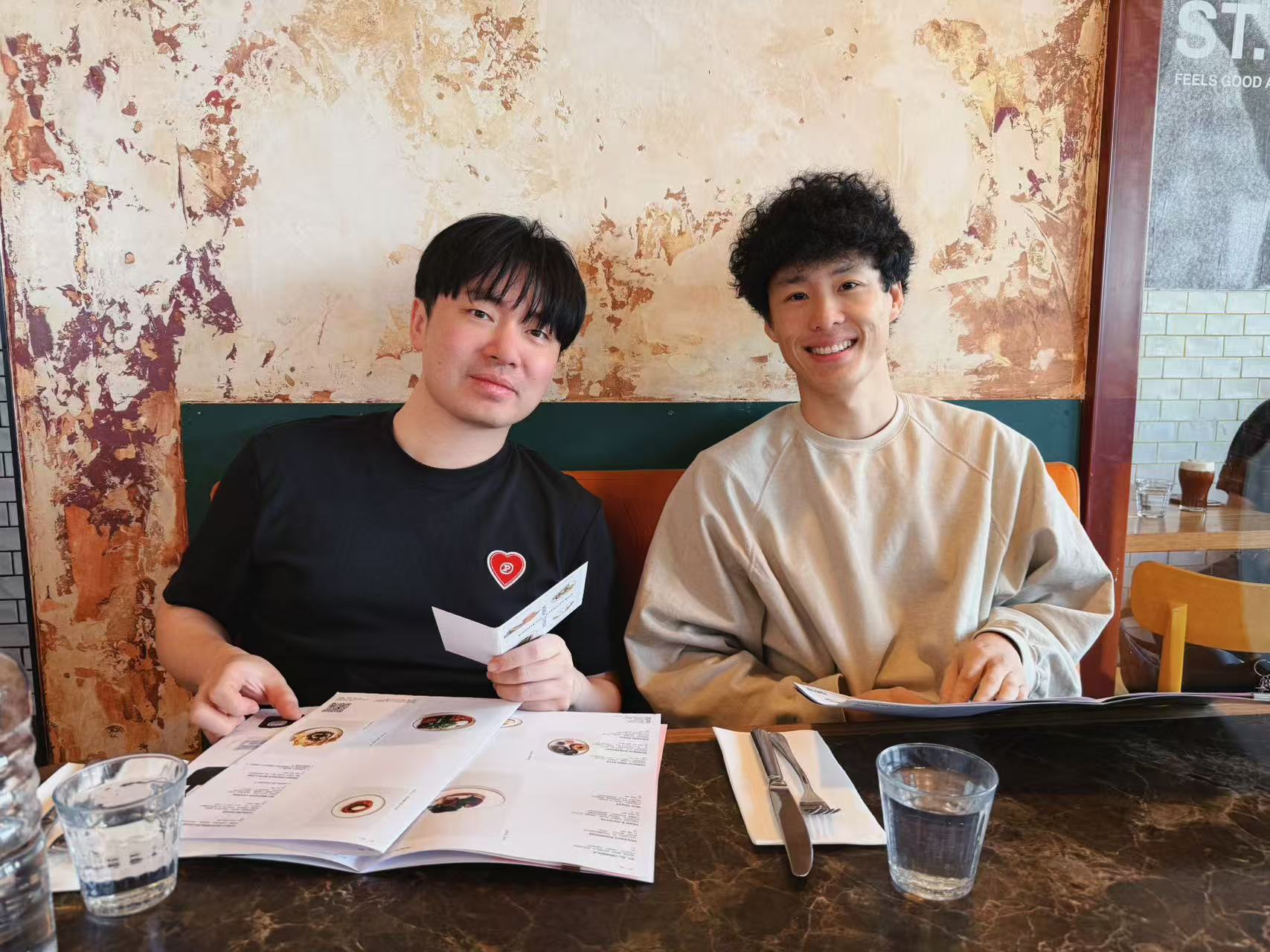 </figure>和Paire的两位联创在办公室楼下的咖啡馆:Rex(无穷动第43期)和Nathan