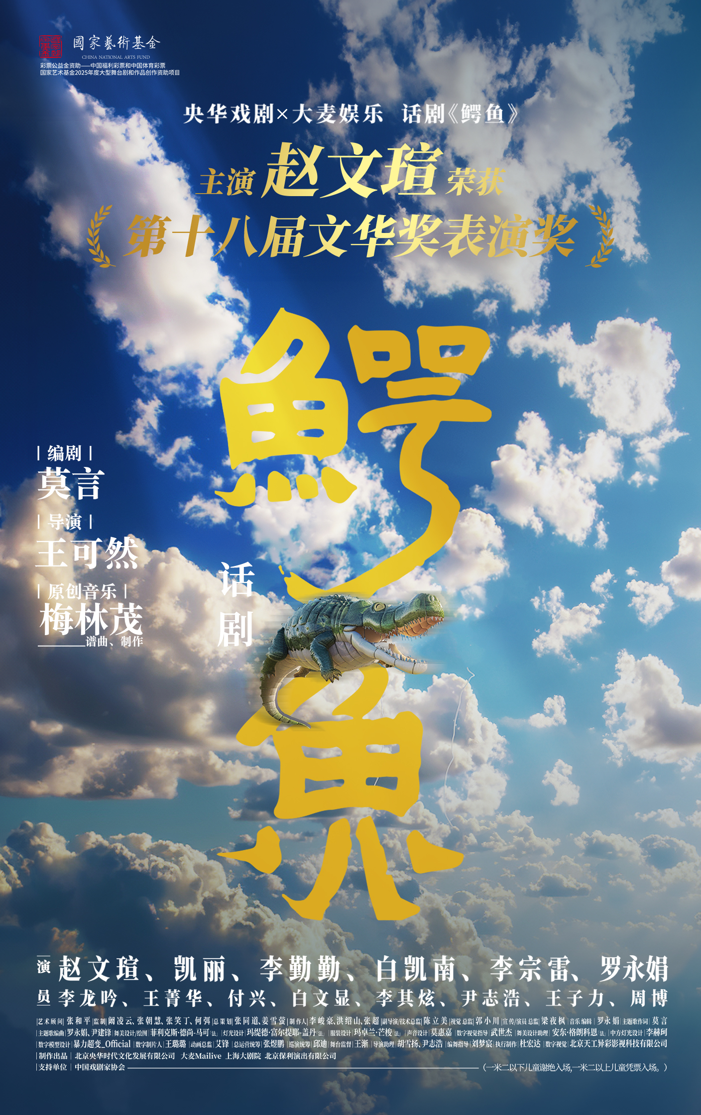 2023年,莫言的剧作《鳄鱼》出版,央华和大麦找到了他,问他要不要尝试演出这个话剧。两年60场演出之后,赵文瑄凭借《鳄鱼》中单无惮的角色获评文华表演奖。文华奖也是我国专业舞台艺术领域的政府最高奖。