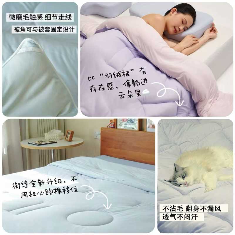 这次推荐的「七西被子」主要用的大豆纤维填充,1:9科学配比。再加上A类面料和定位绗缝的技术,可以保证被芯不结块的同时,又可以做到手感蓬松软糯。暖而不闷热,三层锁温不跑棉。怎么扯啊,翻身啊,被芯都很均匀。以前盖别的被子,有时候刚盖上的时候还是会感觉被窝里有凉气儿。要是天太冷想蒙着头睡觉就会呼吸不上来,把头伸外面去吧,又冷,但【七西】这个就不会。一进去就觉得很温暖,很贴身,裸睡都没问题。