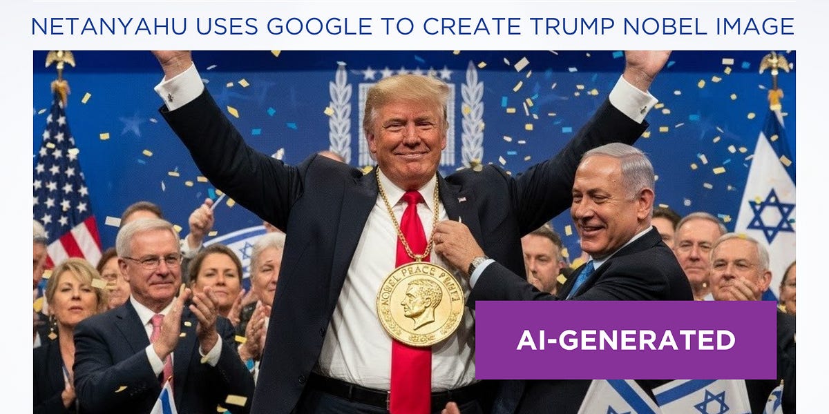 很多有求于美国的政客都宣称支持特朗普拿诺奖,比如内塔尼亚胡曾分享AI图片: