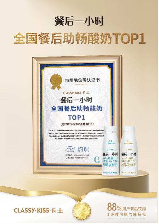 卡士“餐后一小时”,全国餐后助畅酸奶Top1(以2024全年销售额计)