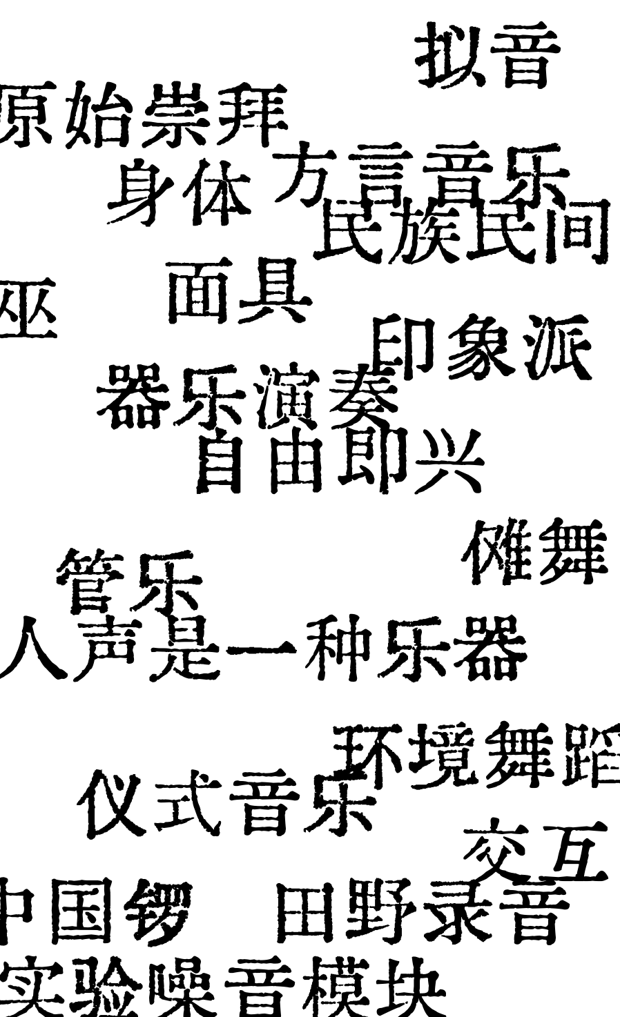 生于东南古闽越国多方言片区的苍南县。以环境采样、人声吟唱、电子合成、彝族⻓号、塑料玩具、戏曲弹拨为材料,宜山方言为唱词。