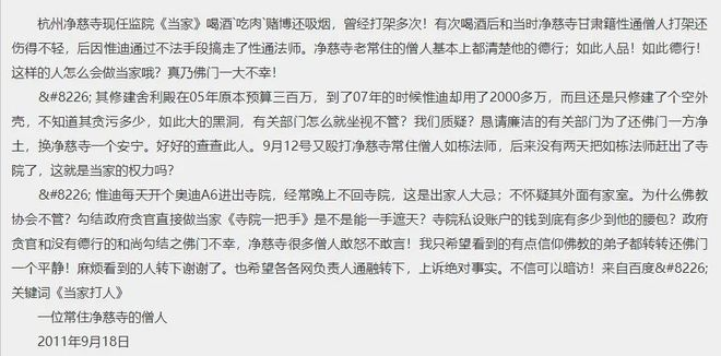 寺院对惟迪的举报网帖