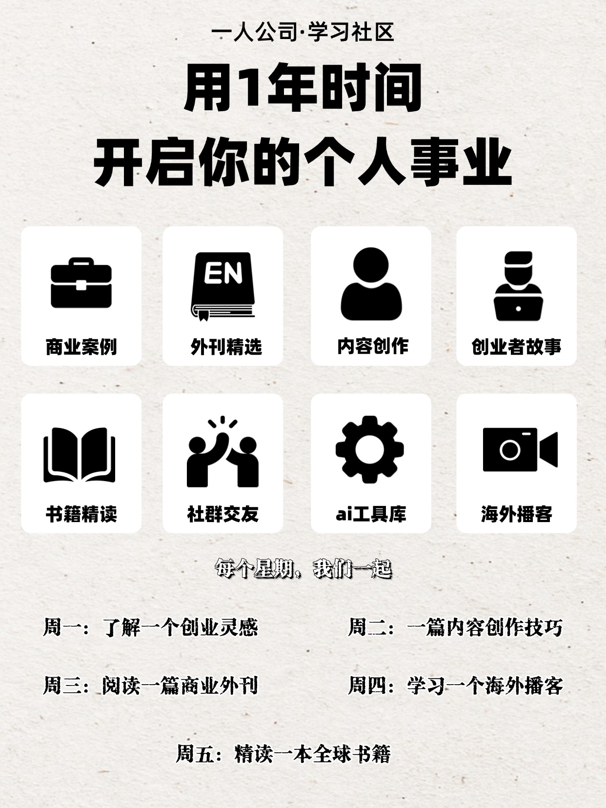 如果你也想通过自己的内容、技能、产品,打造独立收入来源,找到属于你的一人公司模式,这里是你的学习基地。