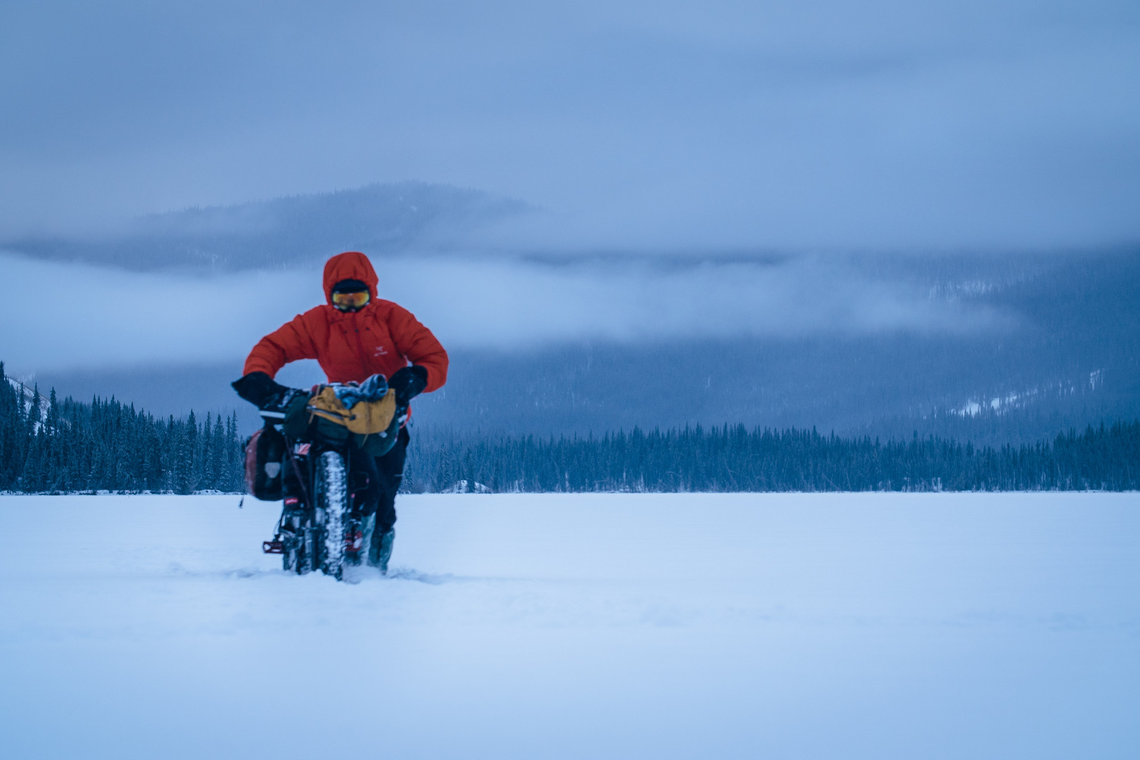 Ben 的身影,成了那片荒原上唯一的移动。加拿大北部的山脉、苔原和森林的多样性,让Ben 兴奋异常。第一次骑车穿越冰冻的河流湖泊、积雪深厚的森林和高耸的雪山,天地间,只剩下自行车的“吱嘎”声和自己的呼吸声,与周围压制一切的白色静默形成鲜明对比。他仿佛活在杰克·伦敦的小说里,时刻在感受“野性的呼唤”。