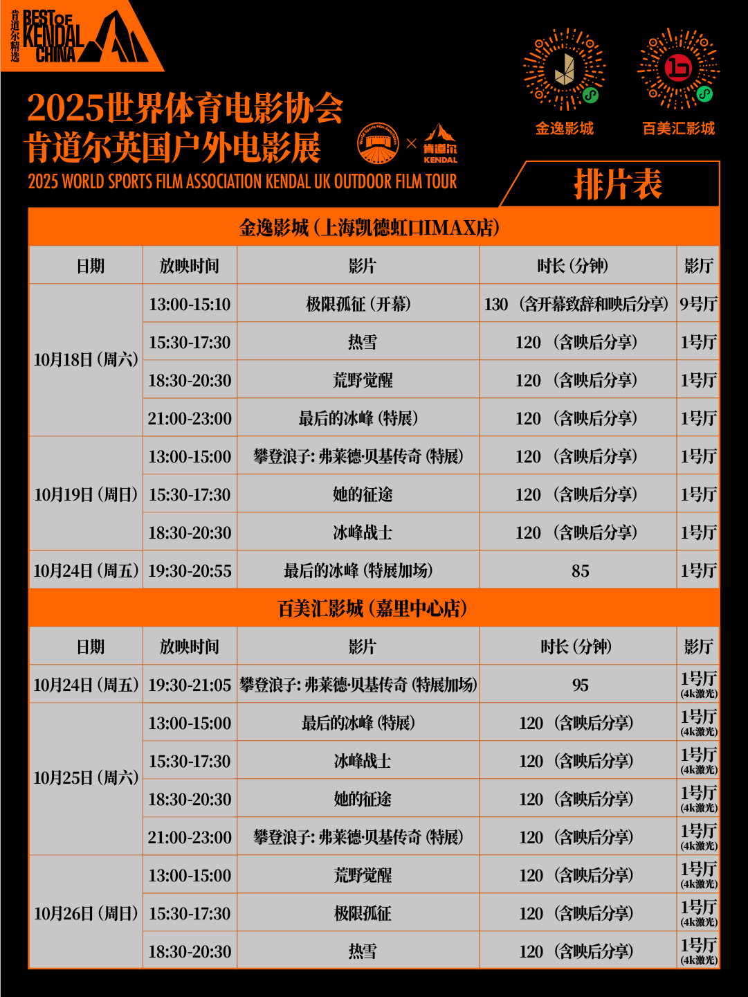本期播客中所提到的《极寒之路》《汤姆》《攀登浪子:弗莱德·贝基传奇》《最后的冰峰》均为2025肯道尔英国户外电影展的展映影片,展映时间为10.18-10.26。