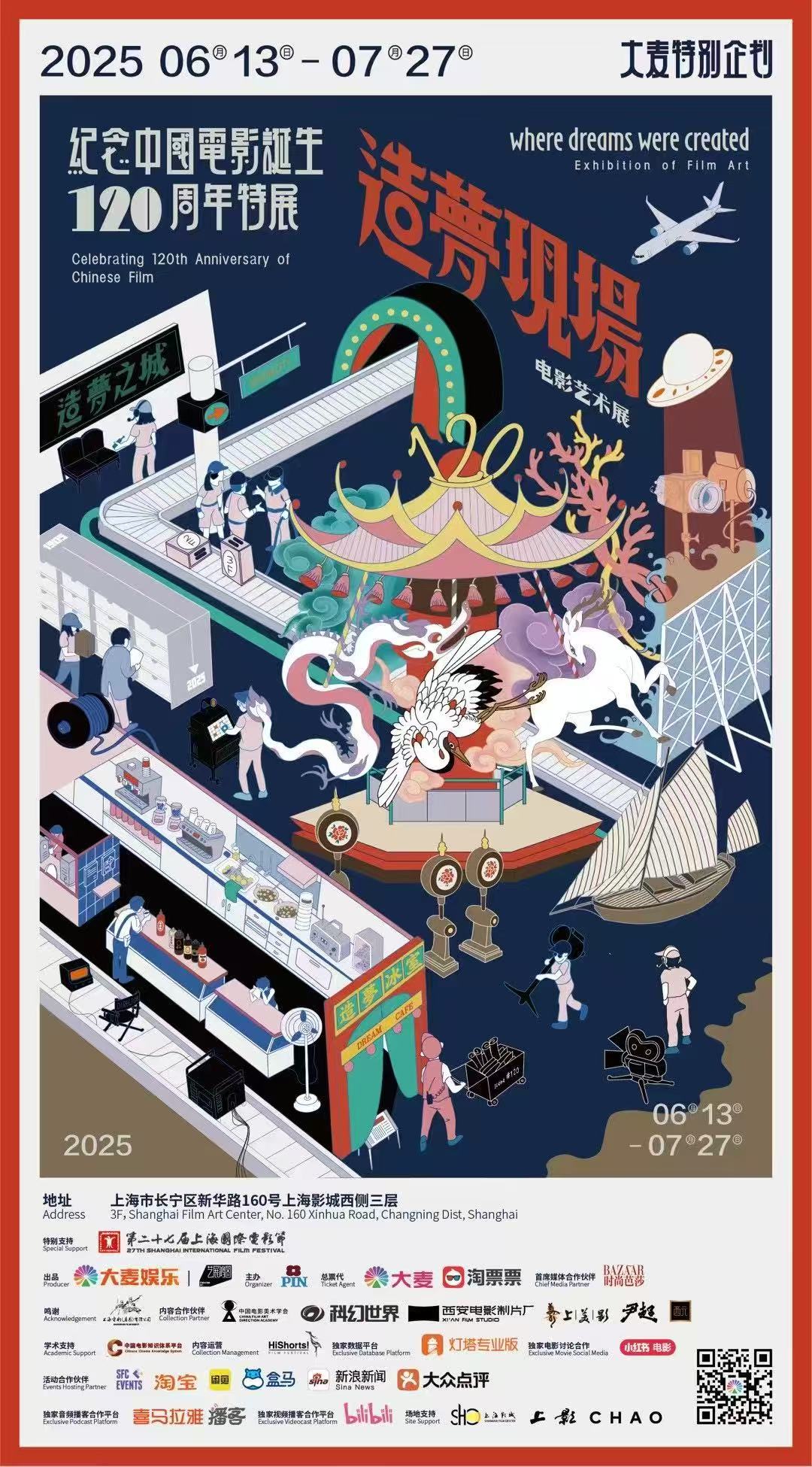 2025年,为庆祝中国电影诞生120周年,造梦现场在上影节上海影城内创作了一个有关电影的城市,在这个城市里里的一切都是关于电影的,拍电影是造梦,看电影是做梦,梦境与致敬并行,观众化身电影之城的公民,在不同的梦境里穿梭,跨越120周年的时空,置身中国电影百年的影像与浪漫之中。展区汇集了300+影人真迹、1000件电影资料、10组+摄影作品、8大主题展区。汇聚了张艺谋、袁和平、管虎等国内著名导演以及上美影、中国电影美术学会等国内顶尖机构,共同构成造梦现场-电影之城。
